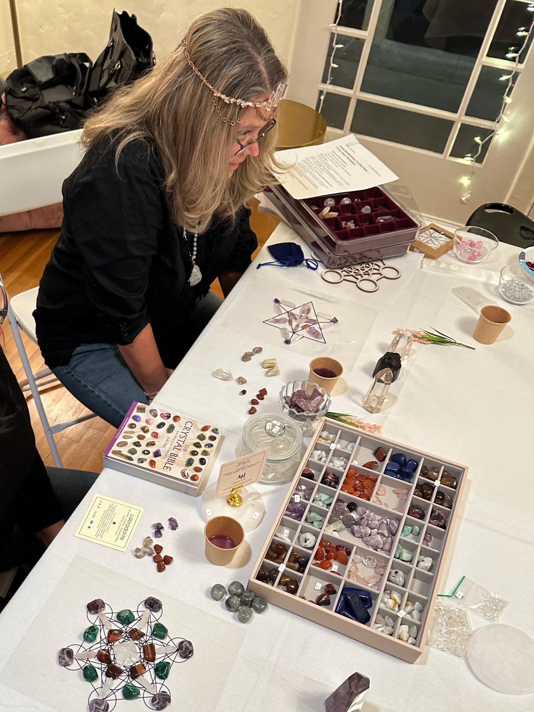Learn create and manifest with crystal grids! As we head into the season of light, celebrating joy, family, peace and love we'll focus on gratitude, abundance and peace grids. Included: the basics of sacred geometry; learn the core manifesting crystals and how to lay them on the grid. Discover how sacred spaces enhance the energy of your home and more! Make a grid for yourself or gift the hostess with a far more unique offering than wine and flowers this season! (Ask about gift packing for grids you create.)